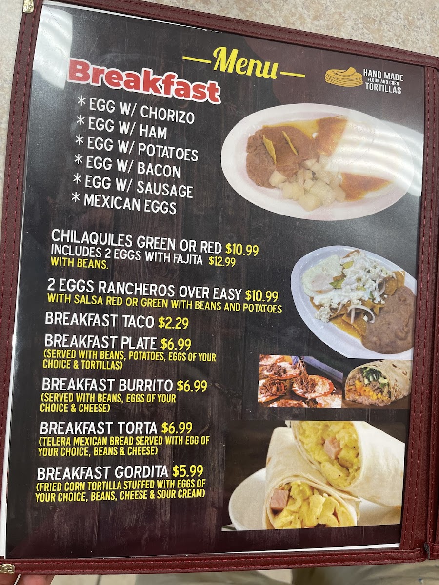 Medium sized burrito, comes with beans, cheese, and scrambled eggs of your choice
