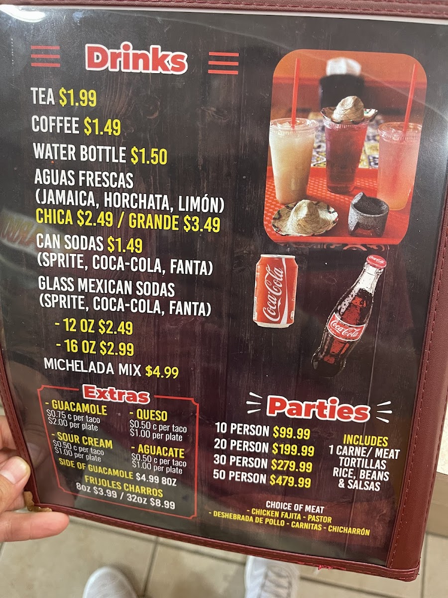 Refreshing Mexican style beverages. "Send with no ice" = extra charge