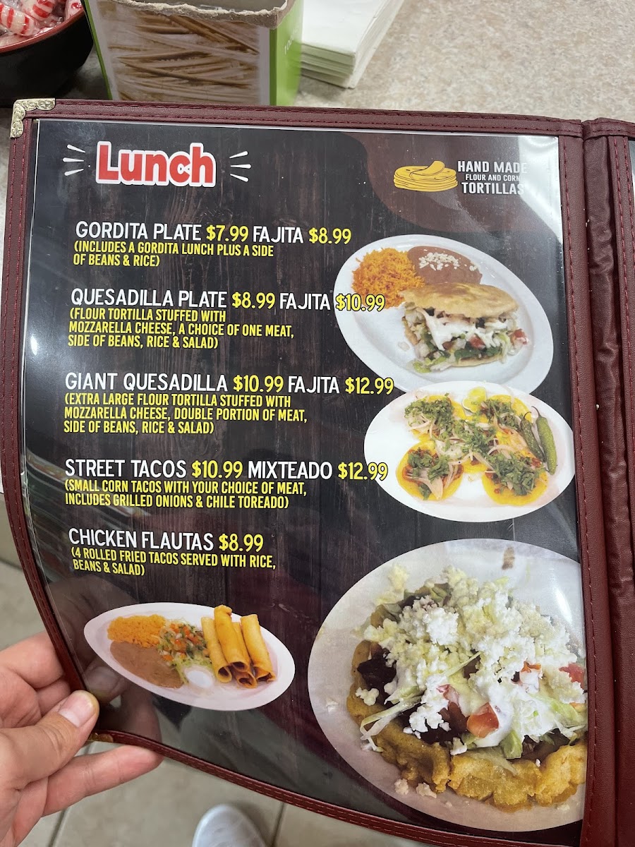 XL gordita stuffed with beans, one type of meat, lettuce, pico De gallo, cheese, and sour cream.